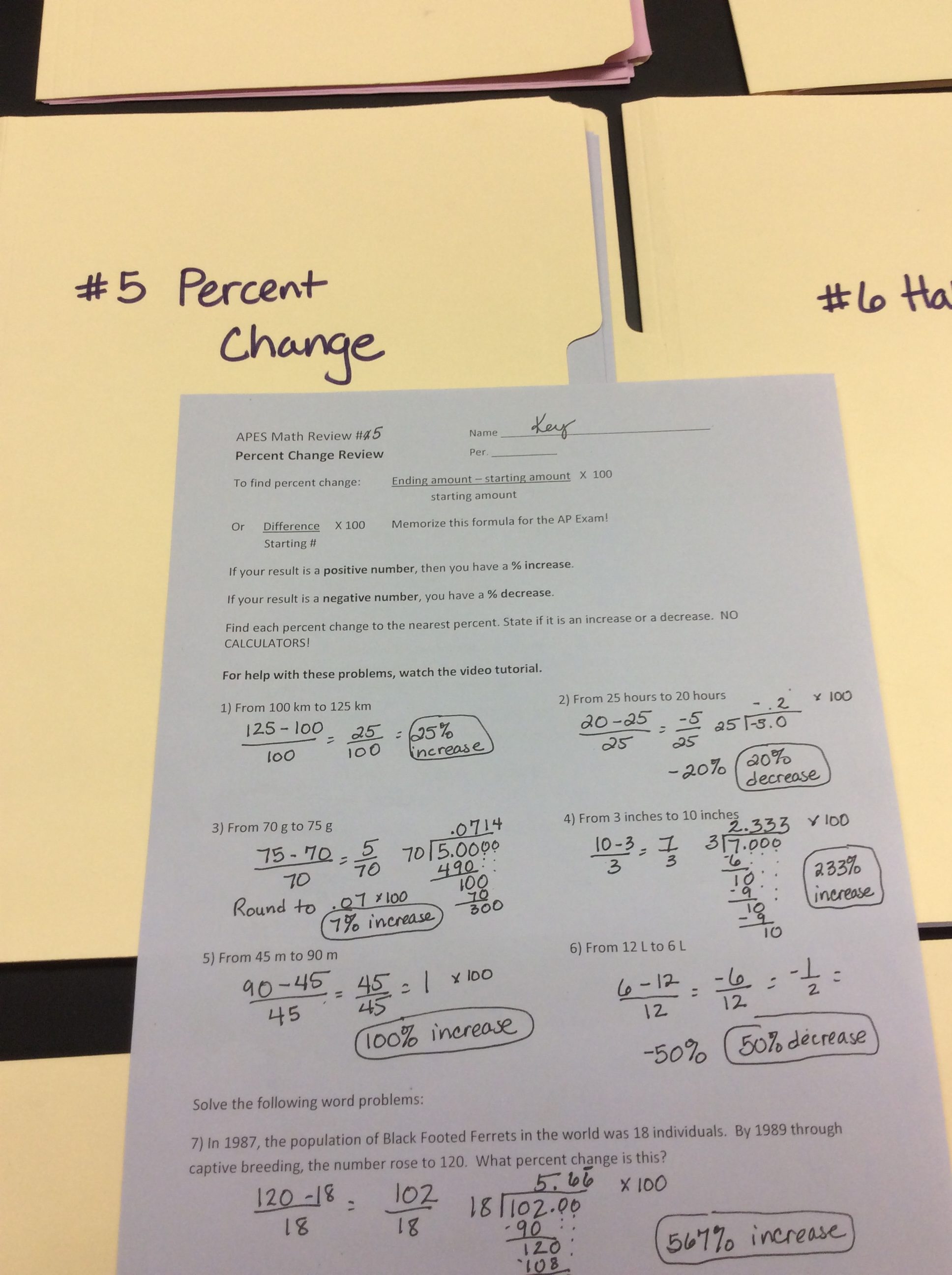 APES Math Review papers with keys.