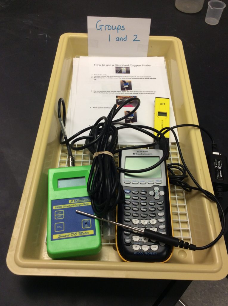 Dissolved Oxygen Probe/s: The most important item to splurge on when you get some money. Kids really see patterns and changes regarding DO and this is a topic that is a big part of our exam. I rotated 1 probe around to different groups when I first started, then built up my supply to 3 probes between 9 groups and now I’m up to 5 probes to rotate between 9 groups. Again, this took several years to get this many. I like the Milwaukee MW600 LED Economy Portable Dissolved Oxygen Meter, because they last a long time and rarely need calibration.