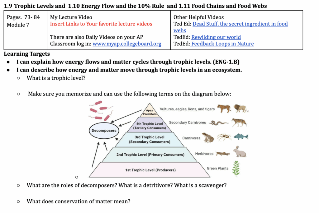 - Online videos for notes. The link for AP® Daily Videos are on the guide (students need a sign-in to AP® Classroom), but you can also add direct links to other video series. My lecture videos are on my Youtube Channel.