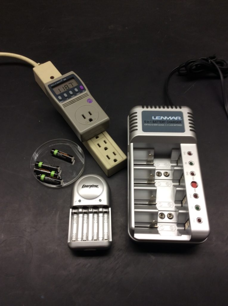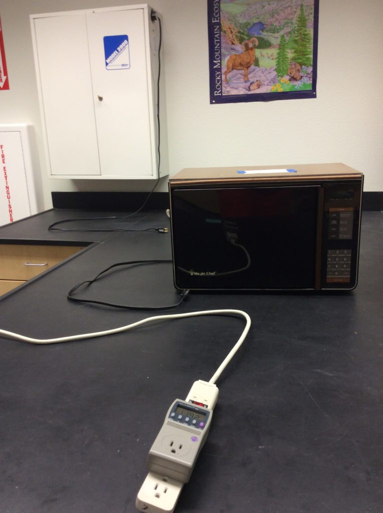 - Kill-A-Watt Meters: I had one meter per lab table with two items to test at each table. I ordered the Kill-A-Watt EZ model from Amazon. But, I also like the regular model too. The EZ model lets kids see the cost of electricity more easily, but the regular model is easier to use and find the “watts”setting. Either are fine for this lab. (But, if you use my write-up, be sure to change some of the instructions if using the regular model).