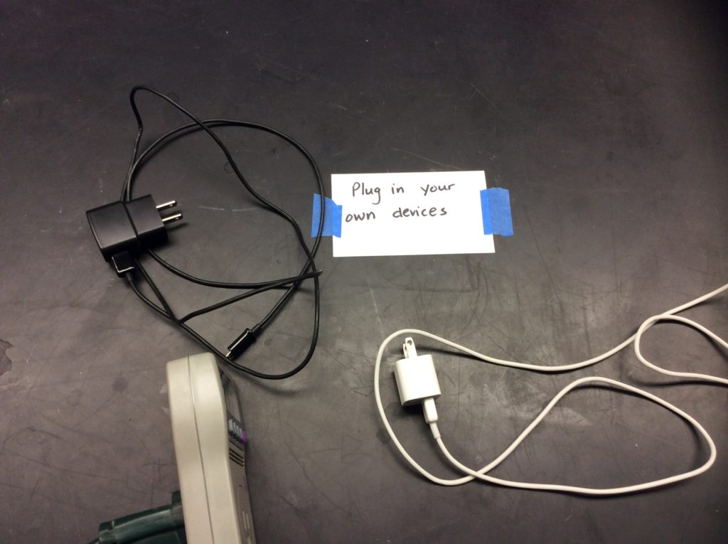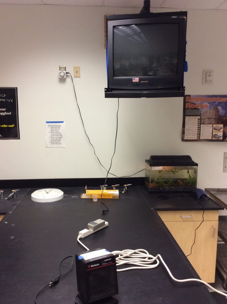 I had two devices per lab table and meter. The students rotated from table to table. I utilized items in the lab whenever possible, like this TV.
