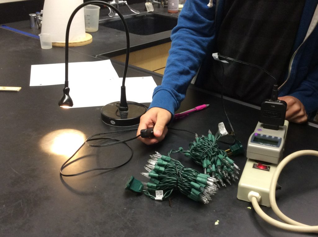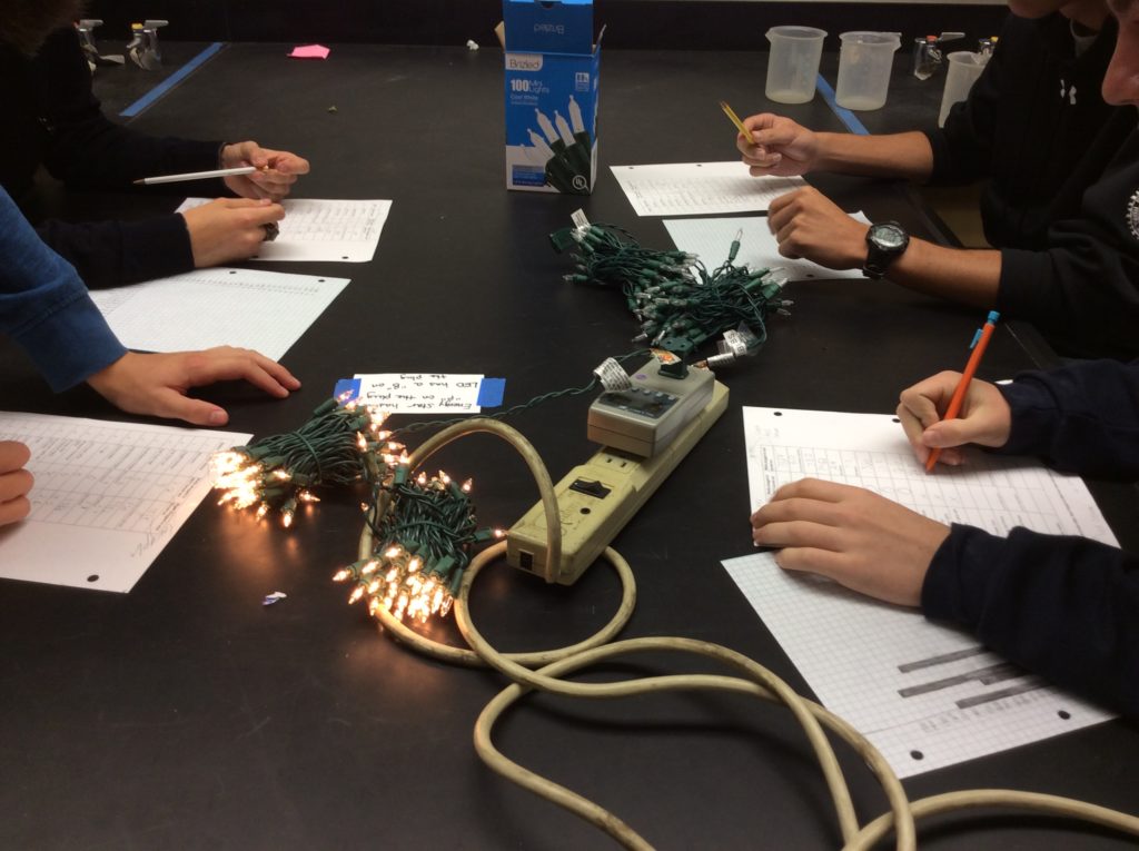 The plugs in my lab are on the sides of the tables which means only 1 person out of 4 could see the meter AND they’d have to turn sideways to do it. Instead, I placed a powerstrip on each table to bring the meter to the top and all kids could read the meter. - Christmas lights (optional, but really engaging for the kids) . I was fortunate to find regular and Energy start Christmas lights at Target in October, but I couldn’t find LED lights so I ordered online. They were pricey, but I only needed 1 strand and it will last for several years for this lab. (And I can use to decorate my classroom for Christmas!)