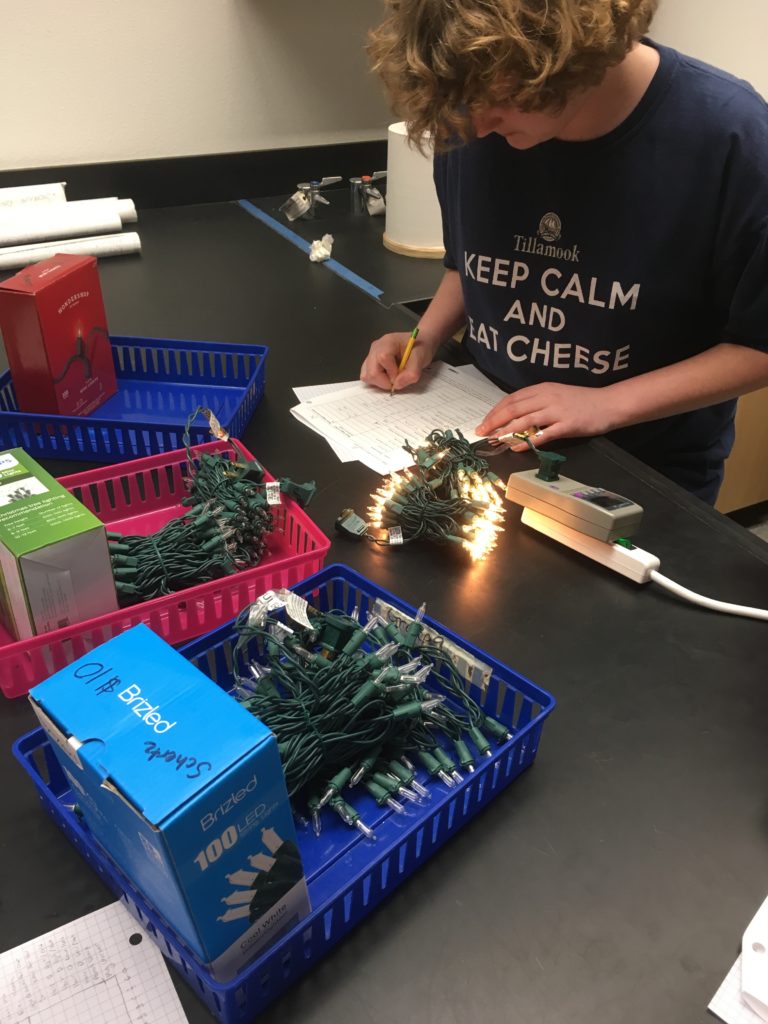 LED, Energy Star, and regular Christmas lights. All were 100 count strands for comparison.