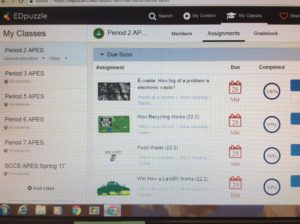In the example below, I assigned two Edpuzzles for each night, March 28th and March 29th. Edpuzzles work on a phone so all my kids either have computers or smartphones to use to watch.