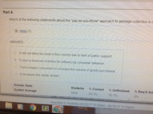 The site I use for quizzing is “Mastering Environmental Science” from Pearson which comes with the Withgott textbook Environment: The Science Behind the Stories. There are a lot of free quizzing sites available online if you don’t have one through your textbook.