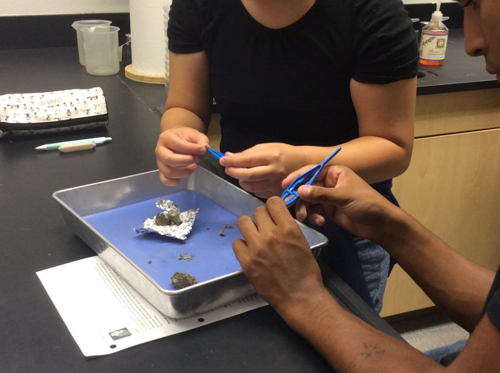 Kids can use their fingers or tweezers to take the pellet apart. Provide reference sheets. Many can be found for free online.