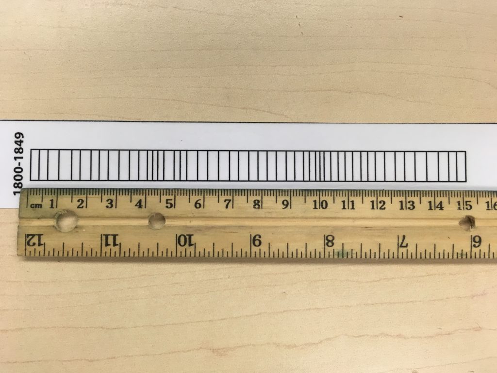 Prepare tree cookies by placing pins on some of the dark rings. This helps students identify and measure between rings. Reading rings is actually harder than it seems. Students (and teachers) have some difficulty with this. When they are counting the number of rings, tell them to ESTIMATE and do the best they can, because its difficult.