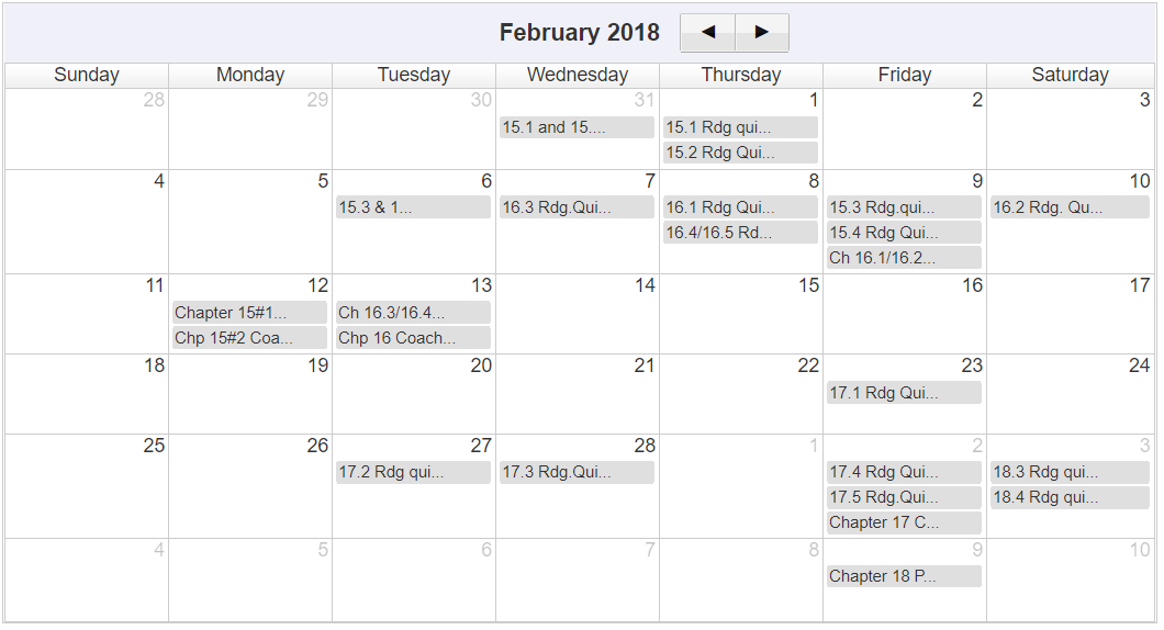 I do not use the pre-made chapter reading quizzes made by Mastering. Instead, I make my own using mostly the Mastering questions along with a few of my own. I sometimes quiz every section (4.1, for example) or every two sections (4.1/4.2, for example). I add a few questions from the case studies to the first section of each chapter since Mastering doesn’t have these questions and I want students to read the case studies.