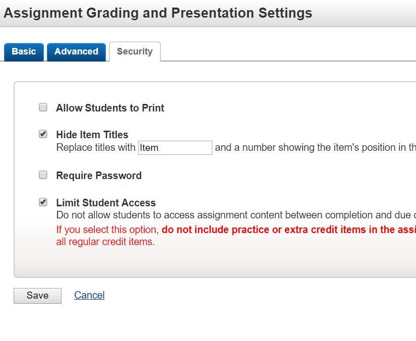 - Change settings on quizzes to prevent cheating and to force kids to read